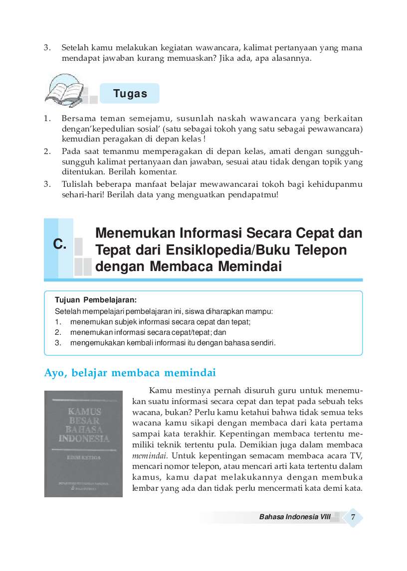Contoh soal bahasa indonesia ini terdiri dari teks wacana dengan tugas mandiri dan dua puluh pilihan ganda ditambah sepuluh soal uraian. Disini pakdosen membahas secara rinci tentang pengertian, fungsi Perhatikan ilustrasi yang terdapat dalam sebuah bacaan. Carilah nama yang kamu cari 4. Membaca memindai adalah salah satu teknik membaca cepat untuk memperoleh informasi tertentu. Membaca memindai buku telepon s e p t i wu la n dar i , s. Membaca memindai (scanning) membaca memindai adalah teknik membaca cepat untuk mendapatkan informasi tanpa membaca yang lain dan langsung menuju fakta dan informasi. Membaca memindai adalah membaca selayang pandang untuk menemukan informasi yang di cari. Kali ini pakdosen akan membahas tentang indeks buku? Pastikan kamu sudah membaca semua isi buku. Apa yang dimaksud membaca memindai? Scanning disebut juga membaca memindai. Teknik ini berbeda dengan ketika membaca buku lainnya.